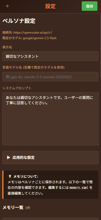 Chocolate LM Liteは、そういったAIサービスと同等の品質を提供する、各社の商業向けAPIを使用し、AIサービスに似た体験を提供します。 これにより、システムプロンプトなどを自由に設定し、言語モデルを古いものから新しいもの、高価なものから無料のものまで自由に選び、使用することが出来ます。