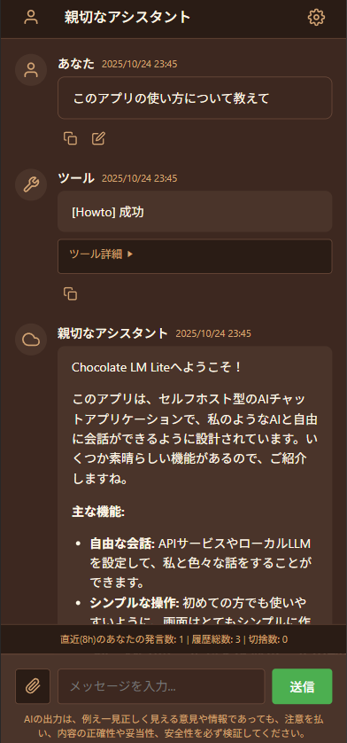 Chocolate LM Lite は、自分のPCで簡単に動かせる、セルフホスト型のAIチャットアプリケーションです。