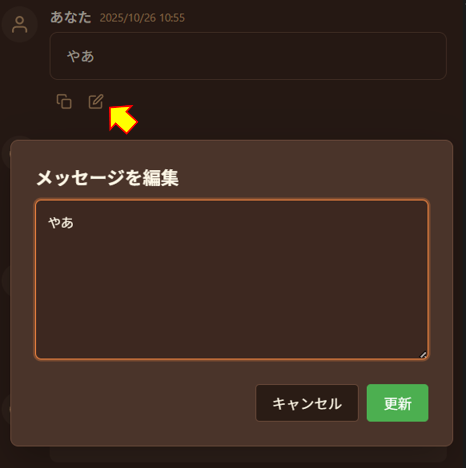 編集ボタンを押すことで編集できます。それより後の発言はすべて削除されます。